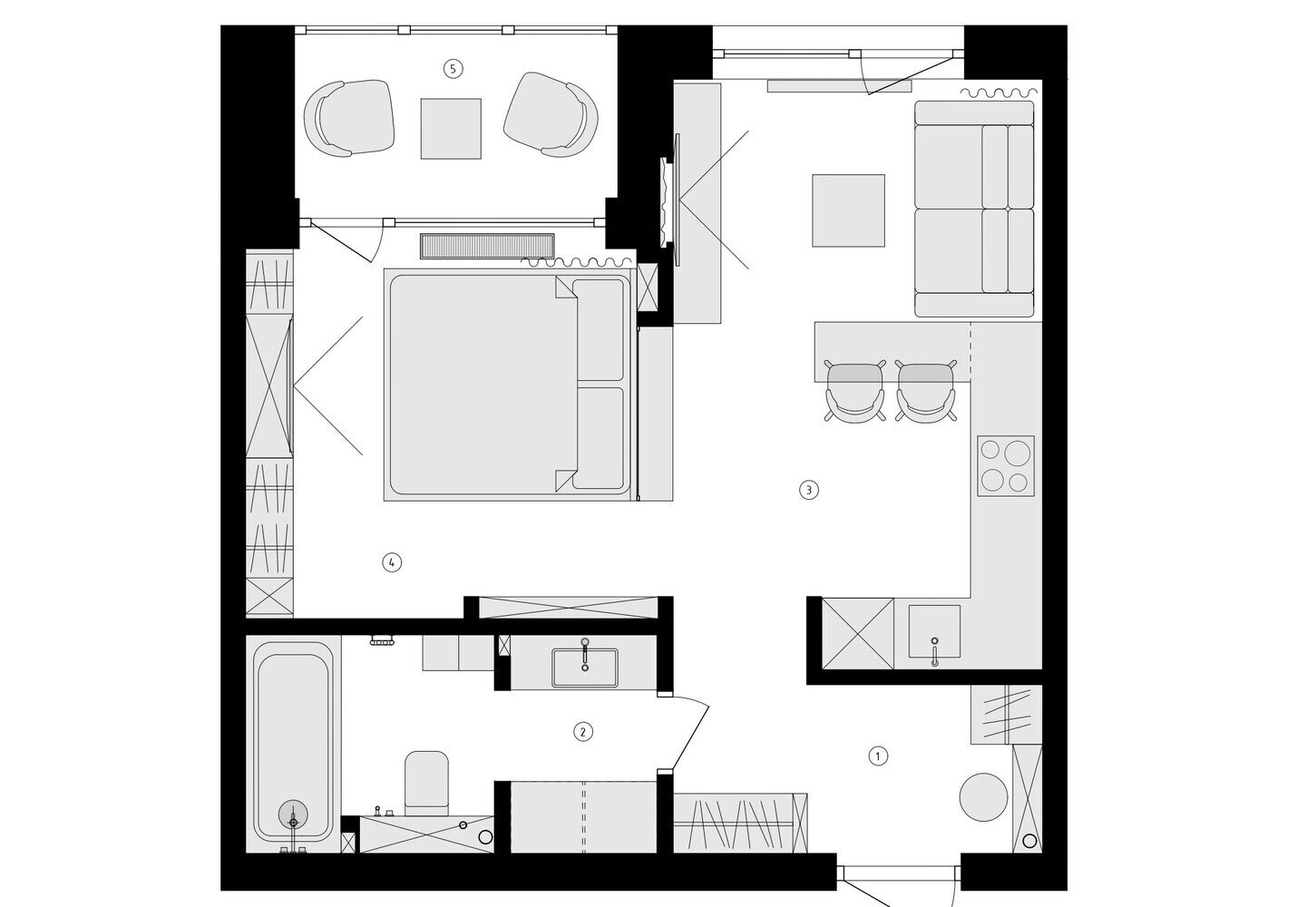 Фотография: Планировки в стиле , Современный, Малогабаритная квартира, Квартира, Проект дня, Новая Москва, Монолитный дом, 2 комнаты, 40-60 метров, Руслан Битиев – фото на INMYROOM