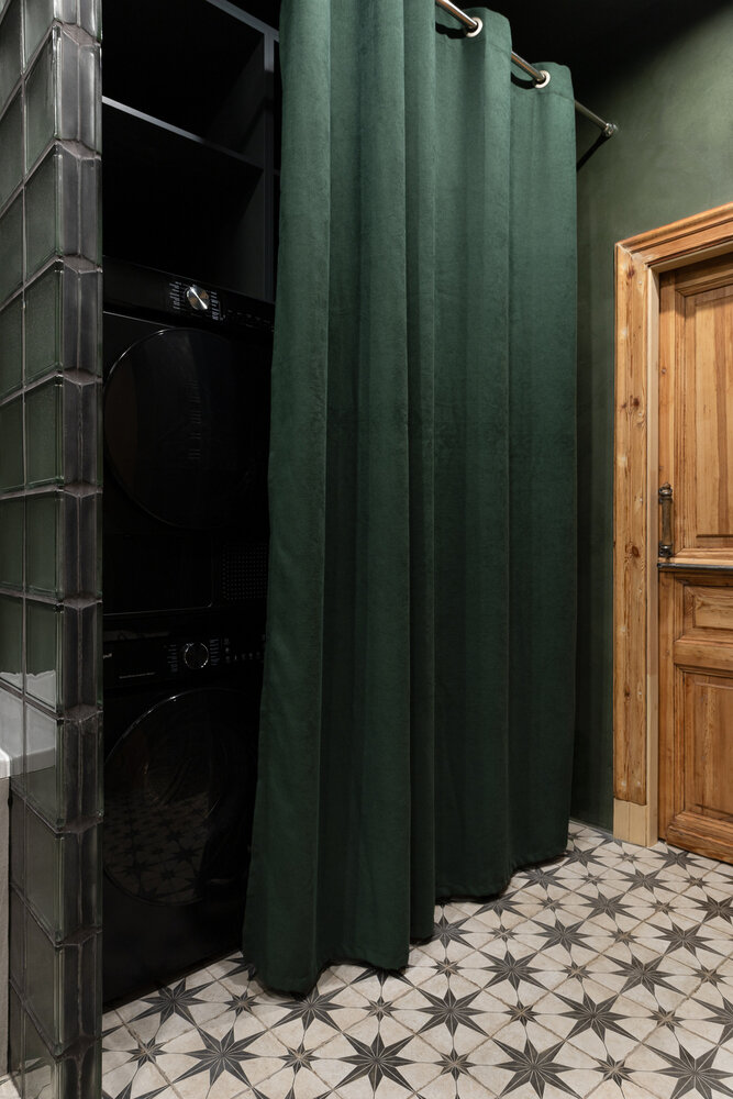 Брутальный санузел в сталинке: как разместили ванну, душевую и постирочную на одной площади4,4