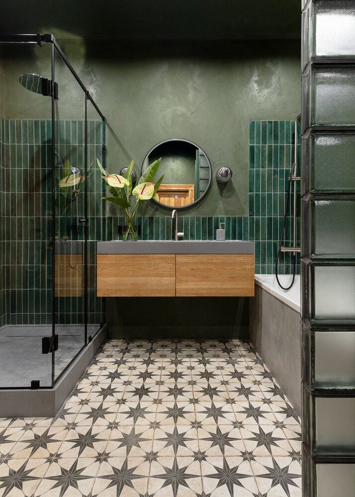 Брутальный санузел в сталинке: как разместили ванну, душевую и постирочную на одной площади4,3