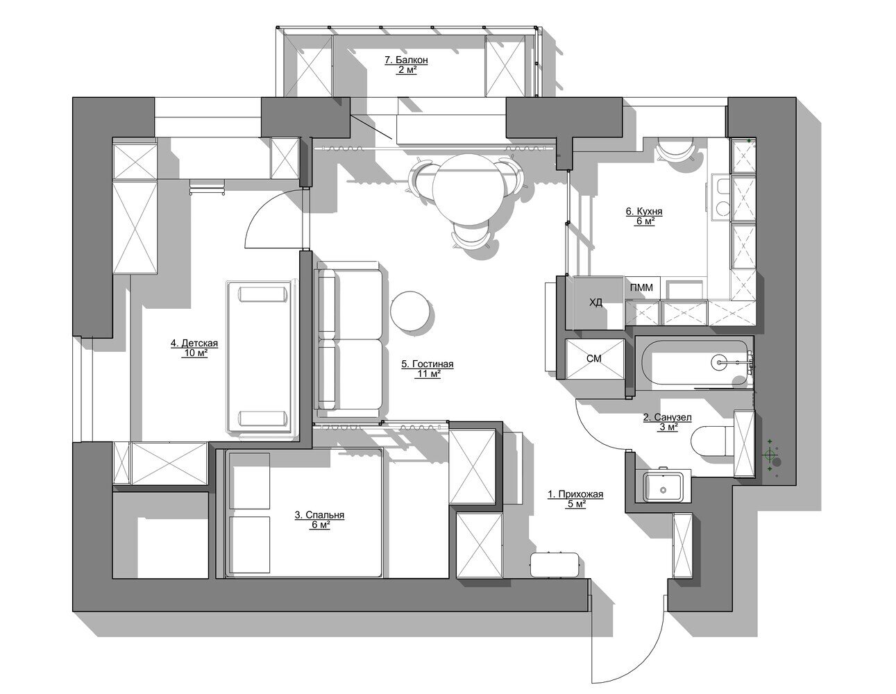 Фотография: Планировки в стиле , Современный, Малогабаритная квартира, Квартира, Проект дня, Беларусь, Минск, Хрущевка, 2 комнаты, 40-60 метров, Ирина Первушина – фото на INMYROOM