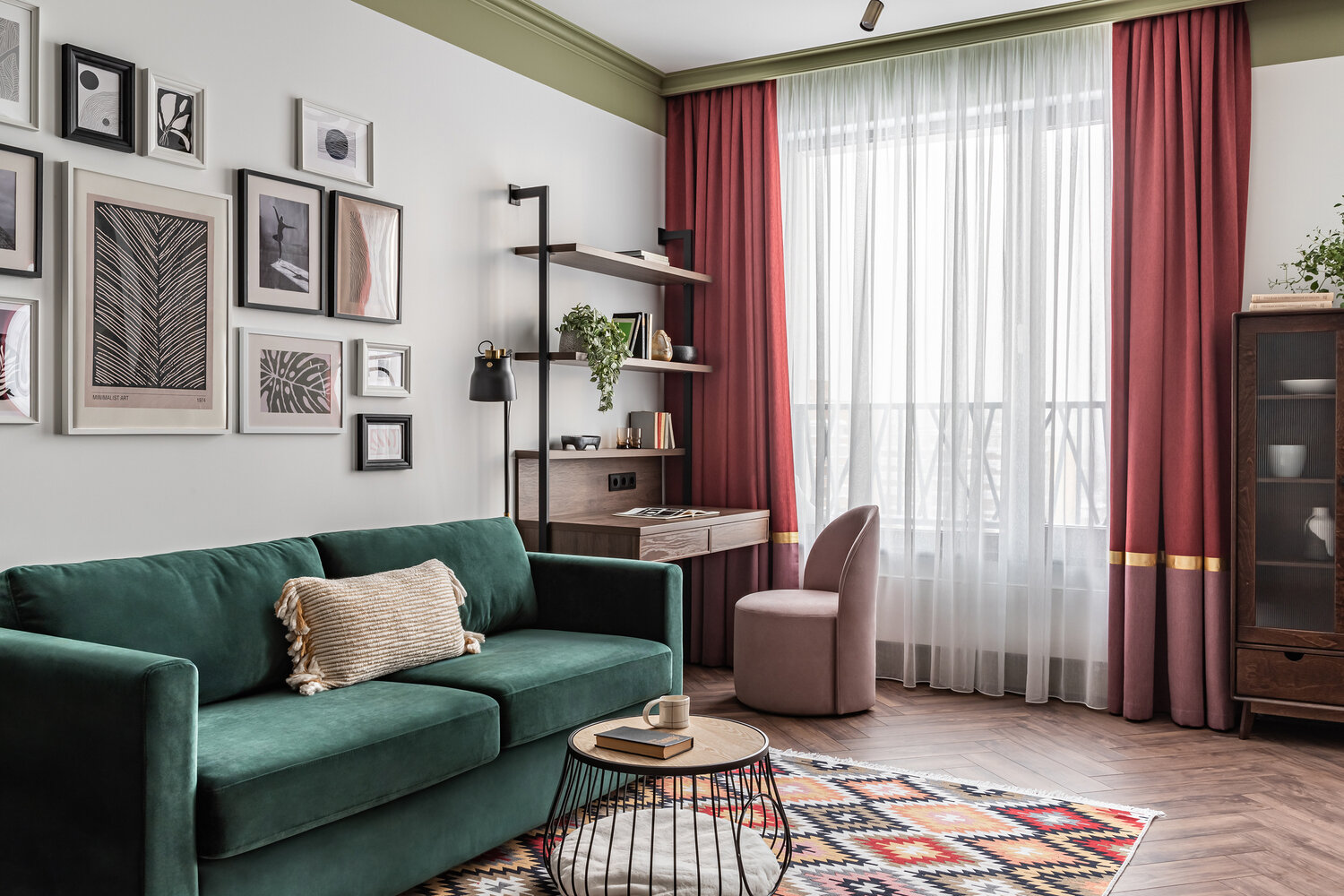 Фотография: Гостиная в стиле Современный, Эклектика, Квартира, Проект дня, Москва, Фили, 2 комнаты, 40-60 метров, Валерия Анисимова, современный с элементами эклектики, Анастасия Ярышева – фото на INMYROOM