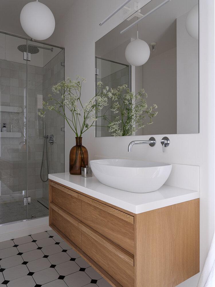 Фотография: Ванная в стиле Скандинавский, Современный, Минимализм, Квартира, Проект дня, Москва, 3 комнаты, 60-90 метров, Анна Мальцева, скандинавский с элементами минимализма – фото на INMYROOM