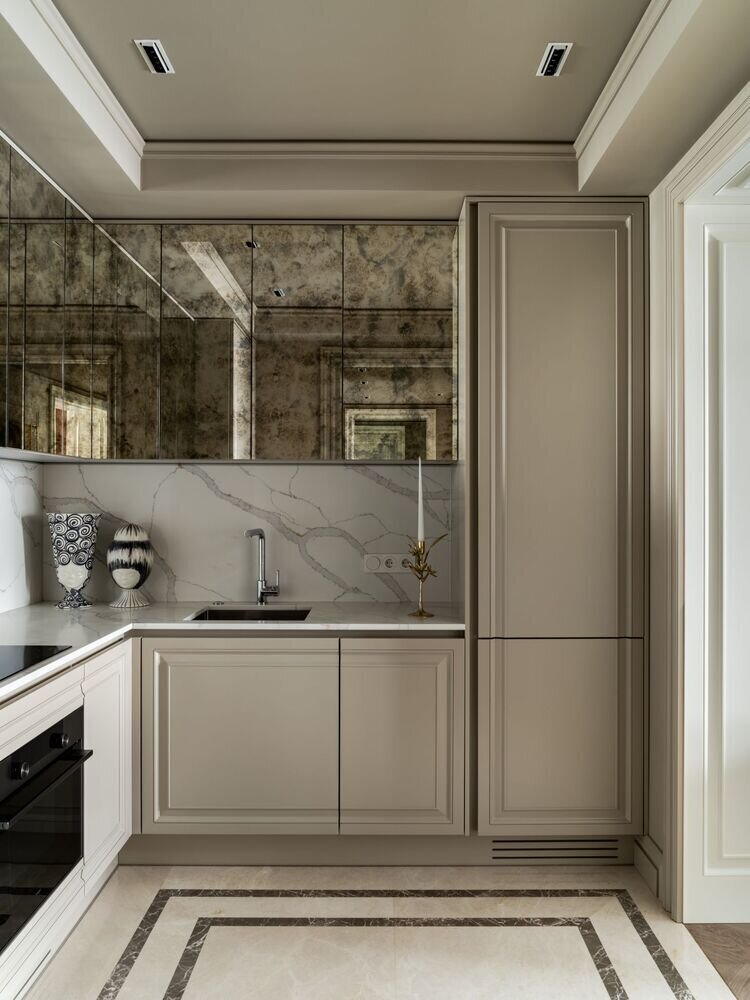Фотография: Кухня и столовая в стиле Классический, Современный, Квартира, Проект дня, Санкт-Петербург, 3 комнаты, 60-90 метров, современный с элементами классики и роскоши, фото интерьера, дизайн интерьера фото, Елизавета Шмиткова, Маурицио Д’Орса – фото на INMYROOM
