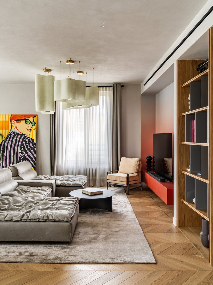 Фотография: Гостиная в стиле Современный, Квартира, Проект дня, Москва, 3 комнаты, Более 90 метров, Эксклюзивные проекты, Александр Сенчугов – фото на INMYROOM