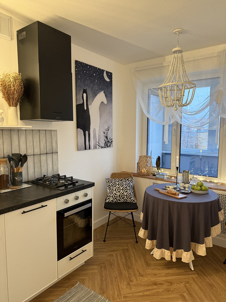 Фотография:  в стиле , Малогабаритная квартира, Квартира, Проект дня, Москва, 1 комната, современный с элементами эклектики, фото интерьера, фото кухни, Кристина Абраменкова – фото на INMYROOM