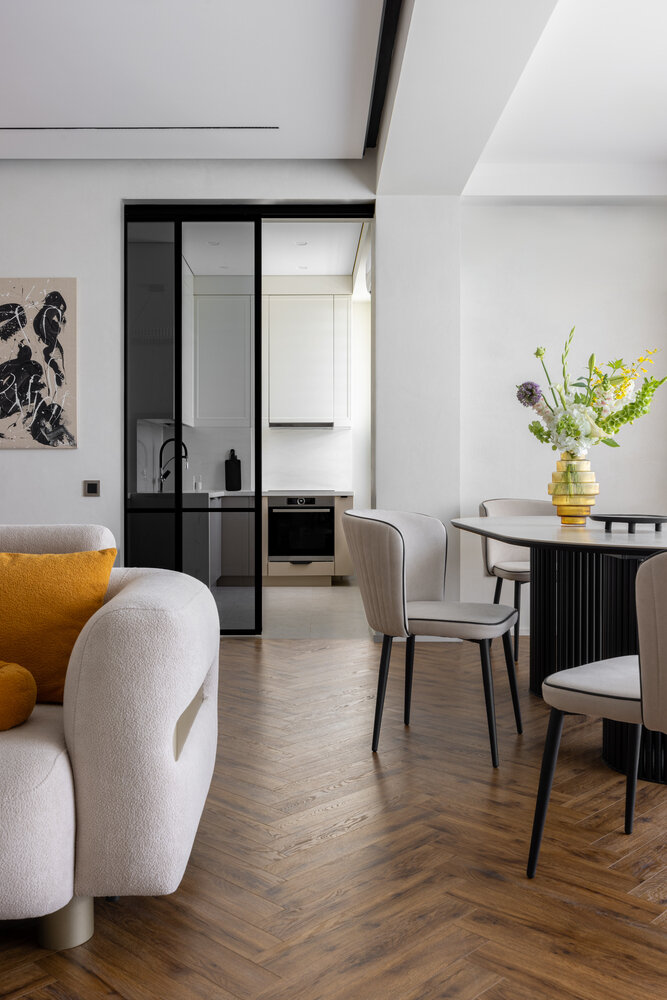 Фотография: Гостиная в стиле Современный, Квартира, Проект дня, Монолитный дом, 3 комнаты, Алматы, минимализм с элементами современного дизайна, Данара Байтурсынова – фото на INMYROOM