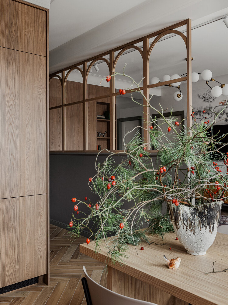 Современный комфорт и ретро 50–60-х: микс стилей в минской трешке 82 м² с панорамными окнамиДизайн