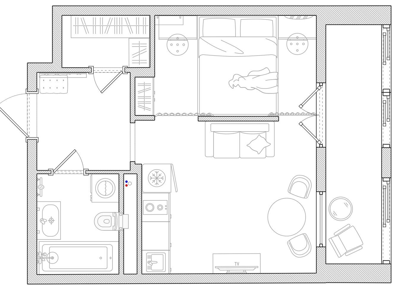 Фотография: Планировки в стиле , Малогабаритная квартира, Квартира, Студия, Проект дня, Москва, до 40 метров, малогабаритки, современный с элементами ретро, фото интерьера, дизайн интерьера фото, Светлана Немцова – фото на INMYROOM