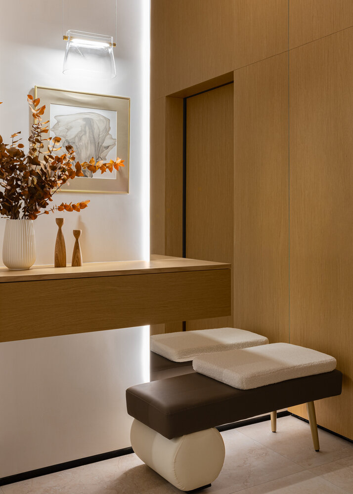 Фотография: Прихожая в стиле Современный, Квартира, Проект дня, Монолитный дом, 3 комнаты, Более 90 метров, Эксклюзивные проекты, Оксана Галактионова, минимализм с элементами современного дизайна – фото на INMYROOM