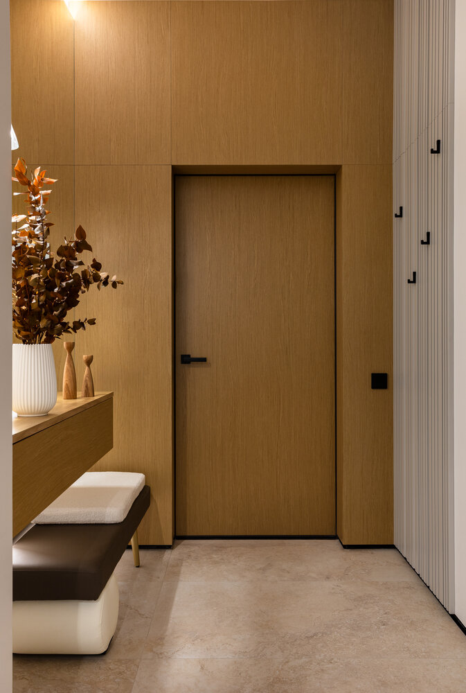 Фотография: Прихожая в стиле Современный, Квартира, Проект дня, Монолитный дом, 3 комнаты, Более 90 метров, Эксклюзивные проекты, Оксана Галактионова, минимализм с элементами современного дизайна – фото на INMYROOM