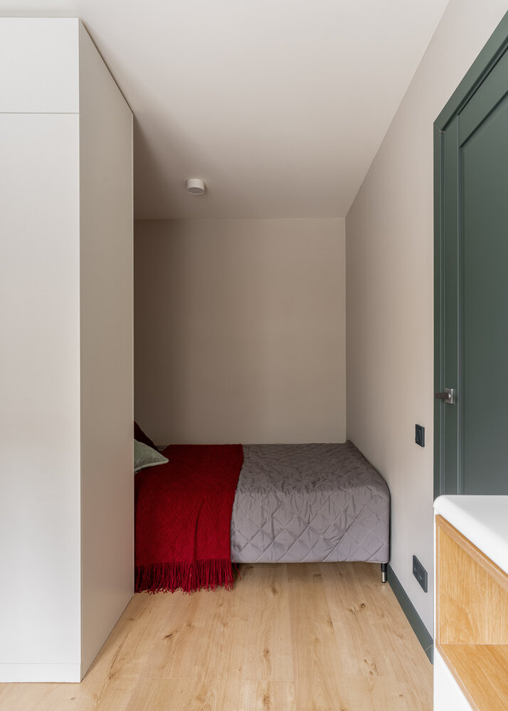 Фотография: Спальня в стиле Современный, Малогабаритная квартира, Квартира, Проект дня, Москва, Хрущевка, 1 комната, до 40 метров, скандинавский с элементами минимализма, Лидия Непреенко – фото на INMYROOM