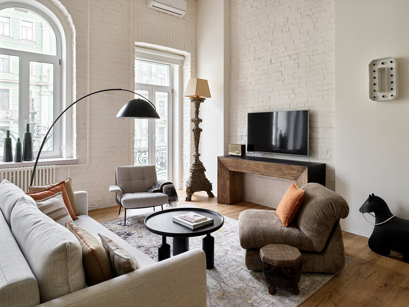 Фотография: Гостиная в стиле Скандинавский, Современный, Эклектика, Квартира, Проект дня, Санкт-Петербург, Кирпичный дом, 1 комната, Николай Банников, эклектика с элементами эко и современного стиля, Алена Дорофеева – фото на INMYROOM