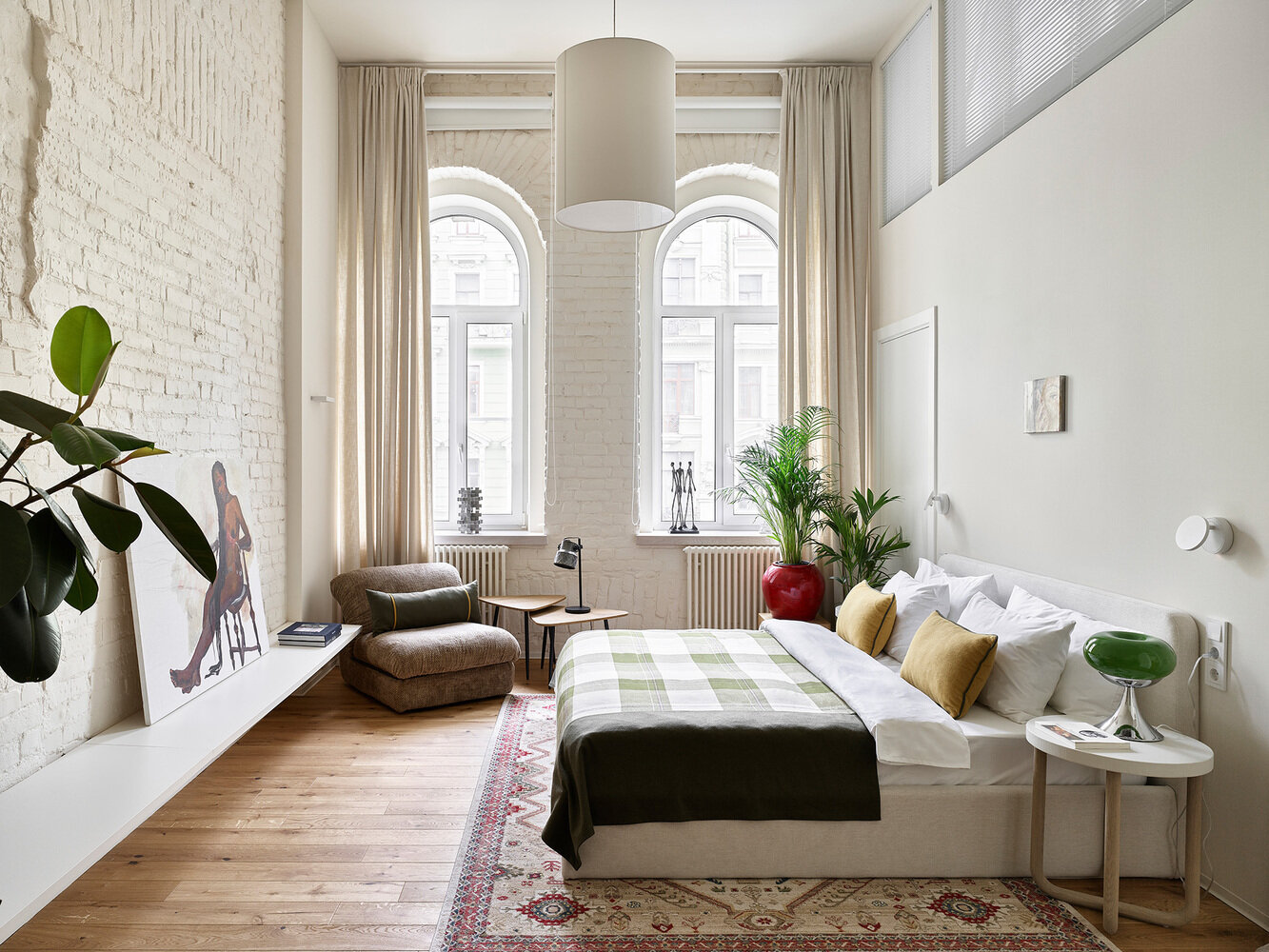 Фотография: Спальня в стиле Скандинавский, Современный, Эклектика, Квартира, Проект дня, Санкт-Петербург, Кирпичный дом, 1 комната, Николай Банников, эклектика с элементами эко и современного стиля, Алена Дорофеева – фото на INMYROOM