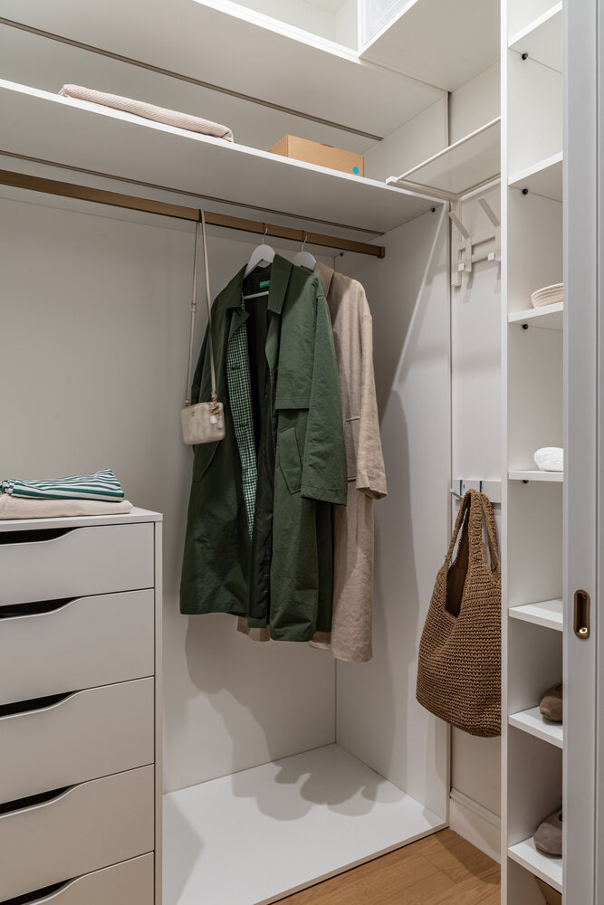 Фотография: Гардеробная в стиле Современный, Малогабаритная квартира, Квартира, Проект дня, Москва, Монолитный дом, 2 комнаты, до 40 метров, современный с элементами неоклассики – фото на INMYROOM