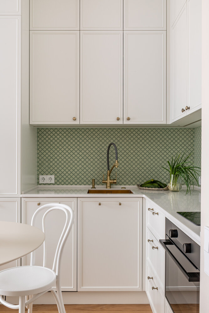 Фотография: Кухня и столовая в стиле Современный, Эклектика, Малогабаритная квартира, Квартира, Проект дня, Москва, Монолитный дом, 2 комнаты, до 40 метров, современный с элементами неоклассики – фото на INMYROOM