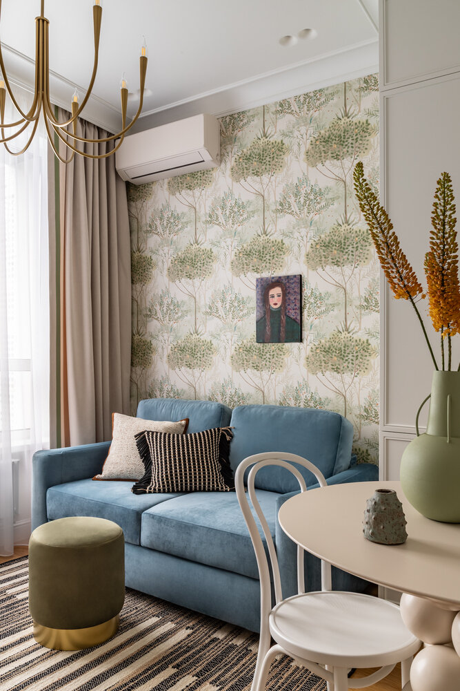 Фотография: Кухня и столовая в стиле Современный, Эклектика, Малогабаритная квартира, Квартира, Проект дня, Москва, Монолитный дом, 2 комнаты, до 40 метров, современный с элементами неоклассики – фото на INMYROOM