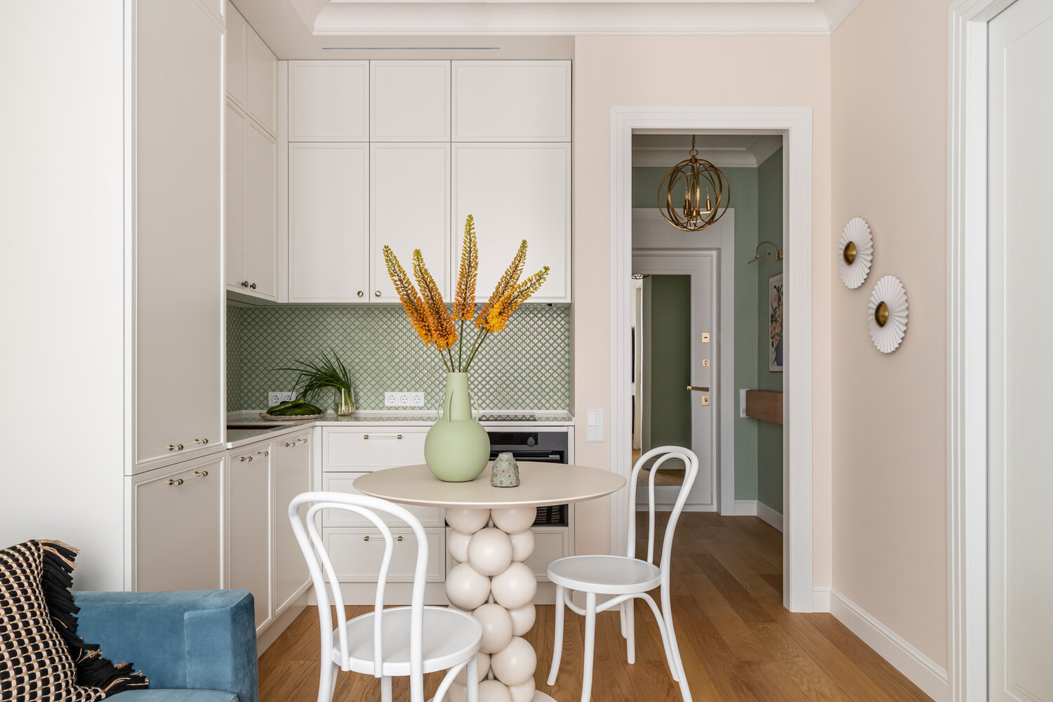 Фотография: Кухня и столовая в стиле Современный, Эклектика, Малогабаритная квартира, Квартира, Проект дня, Москва, Монолитный дом, 2 комнаты, до 40 метров, современный с элементами неоклассики – фото на INMYROOM