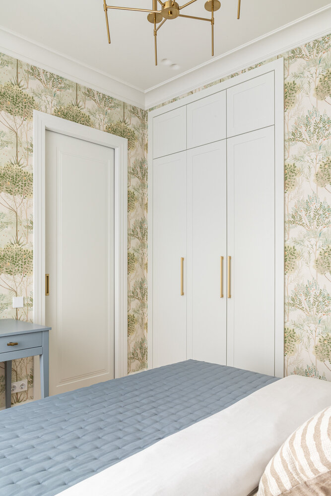 Фотография: Спальня в стиле Современный, Малогабаритная квартира, Квартира, Проект дня, Москва, Монолитный дом, 2 комнаты, до 40 метров, современный с элементами неоклассики – фото на INMYROOM