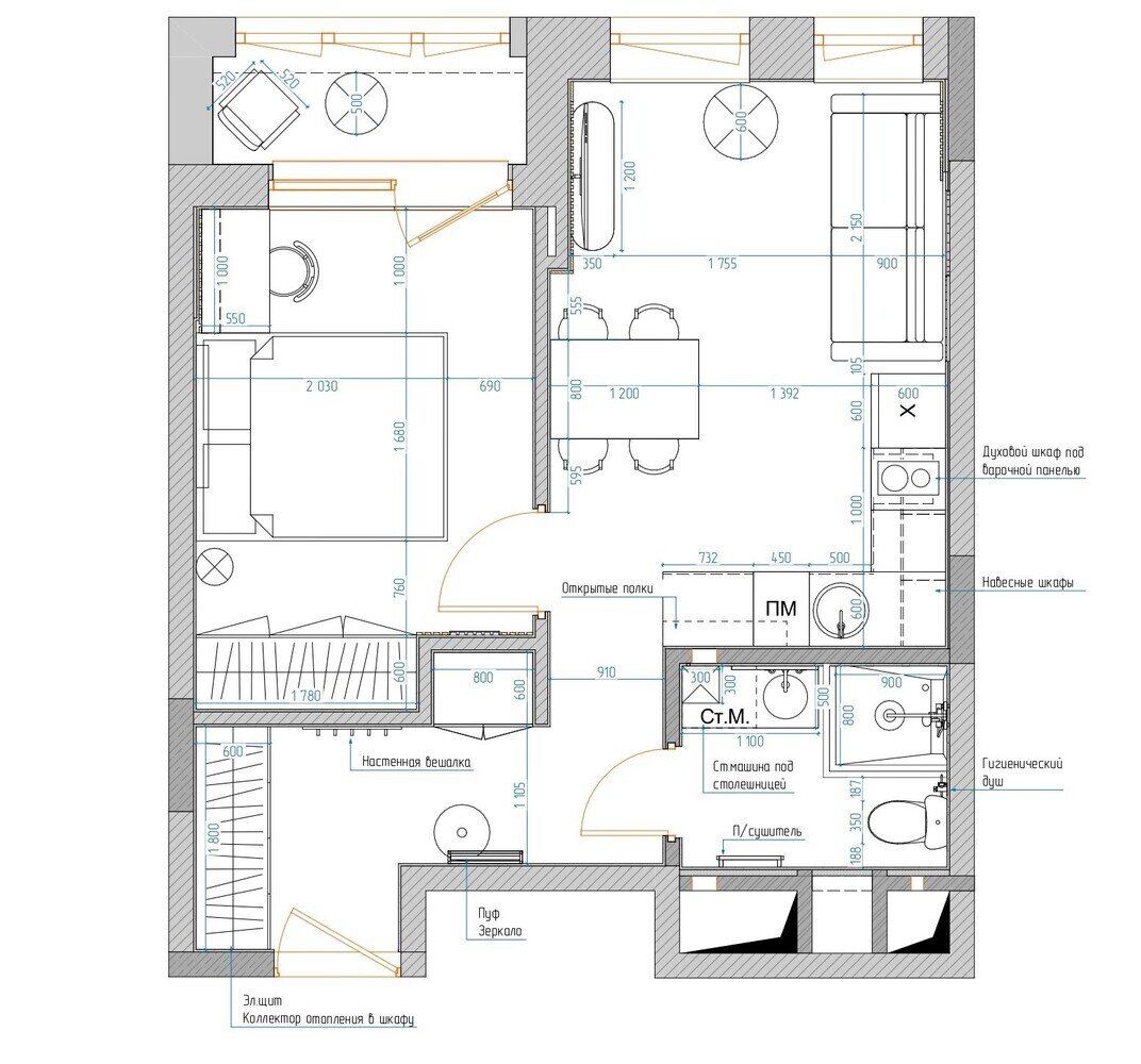Фотография:  в стиле , Малогабаритная квартира, Квартира, Проект дня, Москва, 1 комната, 40-60 метров, Ирина Долганова, современный с элементами минимализма и скандинавского стиля – фото на INMYROOM