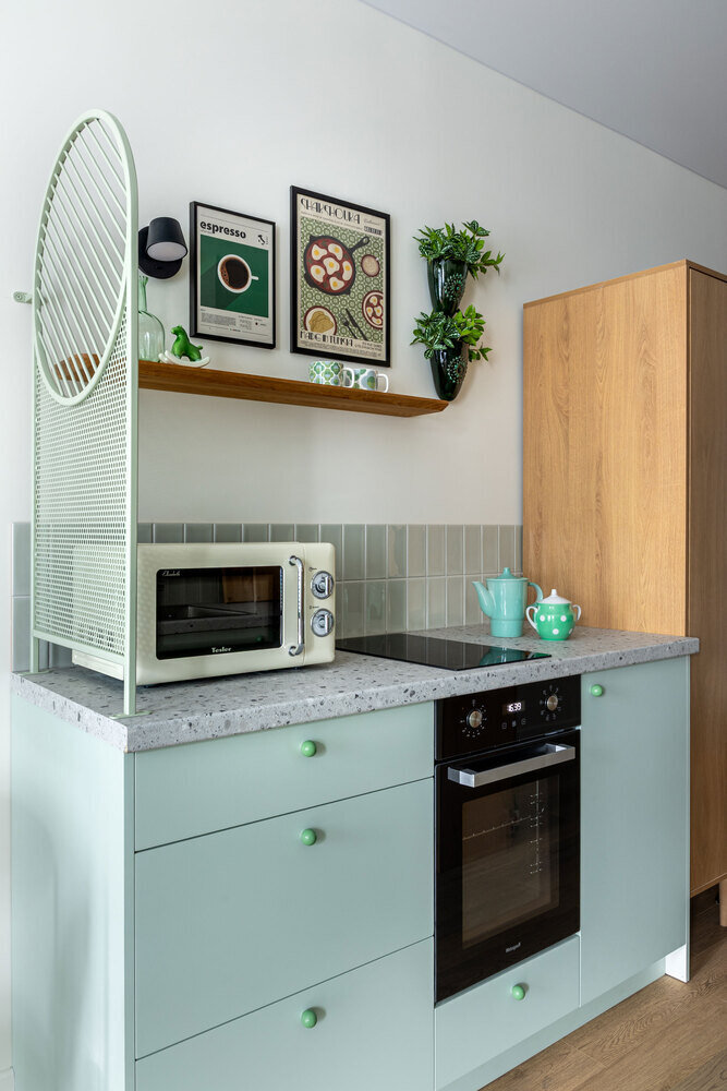 Фотография: Кухня и столовая в стиле Современный, Малогабаритная квартира, Квартира, Студия, Проект дня, Татьяна Иванова, до 40 метров, Ярославль, современный с элементами ретро, фото интерьера, дизайн интерьера фото – фото на INMYROOM