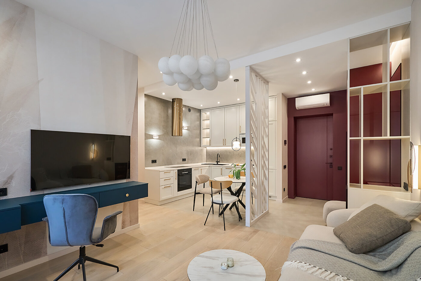 Функциональная однушка 50 м² с необычным зонированиемДизайн