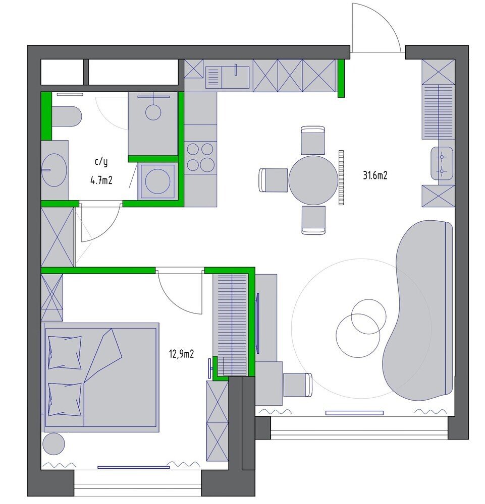 Функциональная однушка 50 м² с необычным зонированиемДизайн