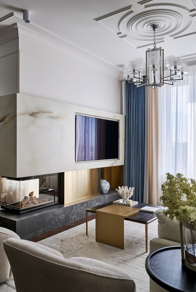 Фотография: Гостиная в стиле Классический, Современный, Квартира, Проект дня, 3 комнаты, Более 90 метров, Эксклюзивные проекты, современный с элементами неоклассики, Новосибирская область, Кольцово – фото на INMYROOM