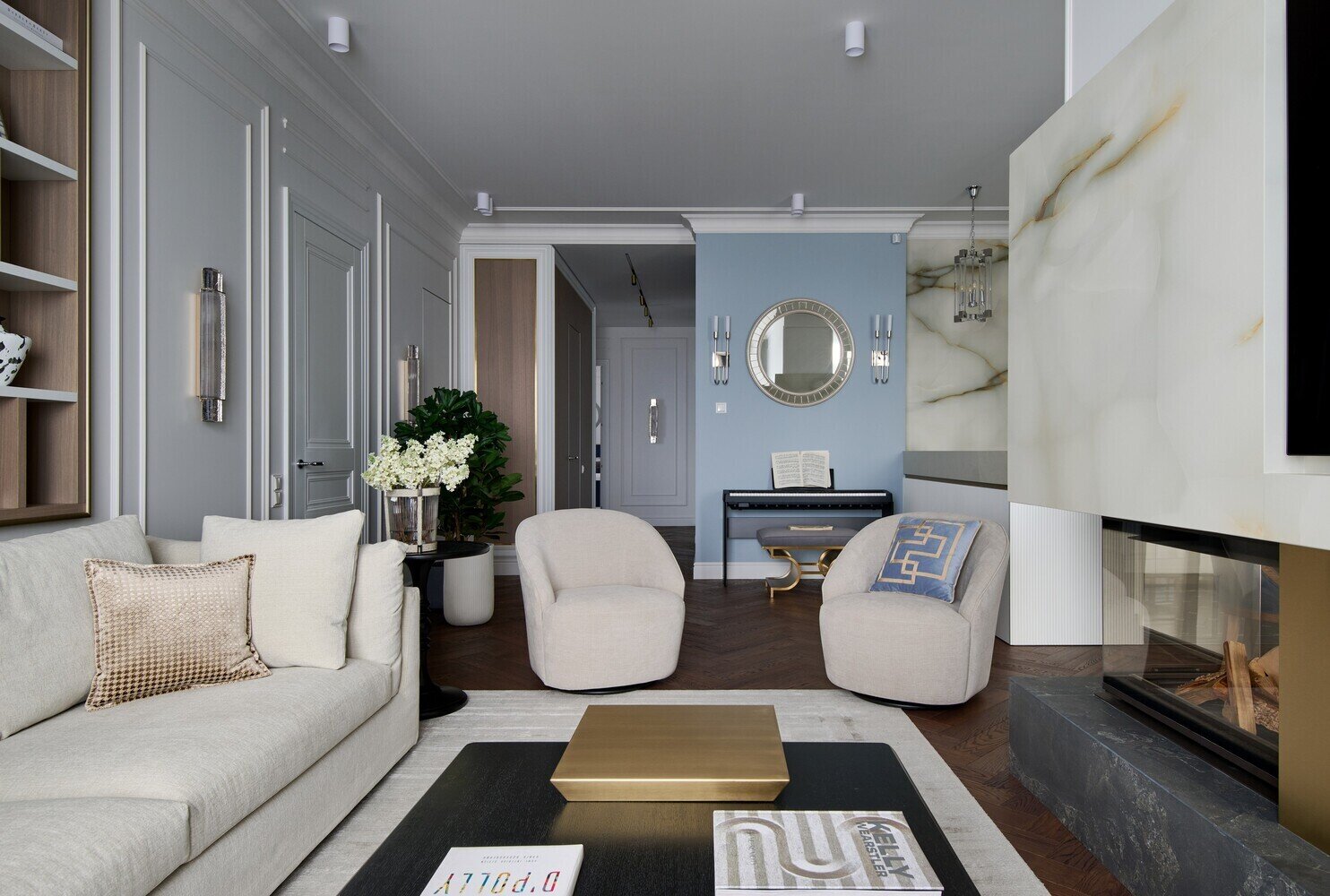 Фотография: Гостиная в стиле Классический, Современный, Квартира, Проект дня, 3 комнаты, Более 90 метров, Эксклюзивные проекты, современный с элементами неоклассики, Новосибирская область, Кольцово – фото на INMYROOM