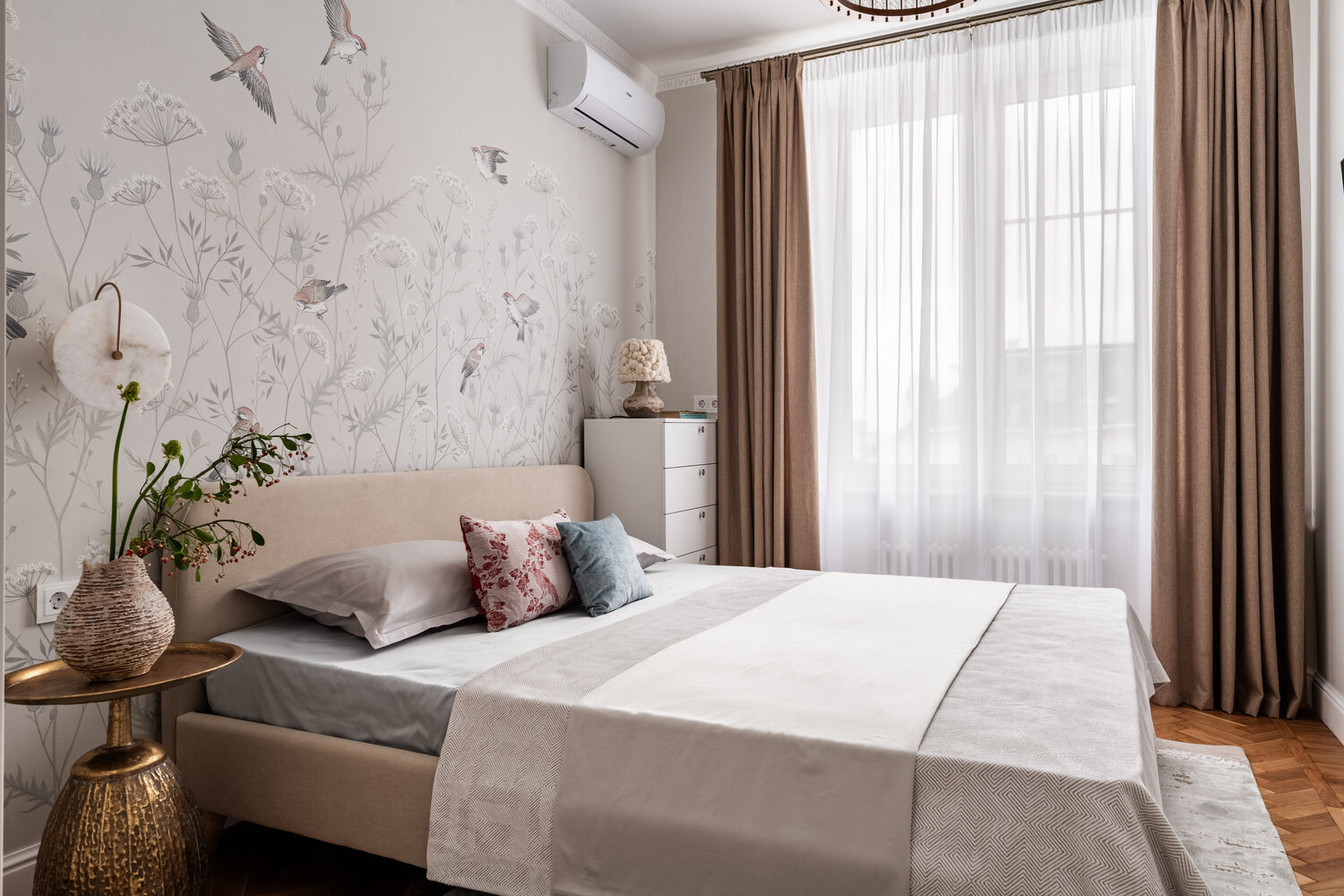Фотография: Спальня в стиле Современный, Квартира, Проект дня, Москва, Сталинка, 2 комнаты, 40-60 метров, Патриаршие пруды, винтаж/ретро, Рамиля Шагиева, Эмиль Шагиев – фото на INMYROOM