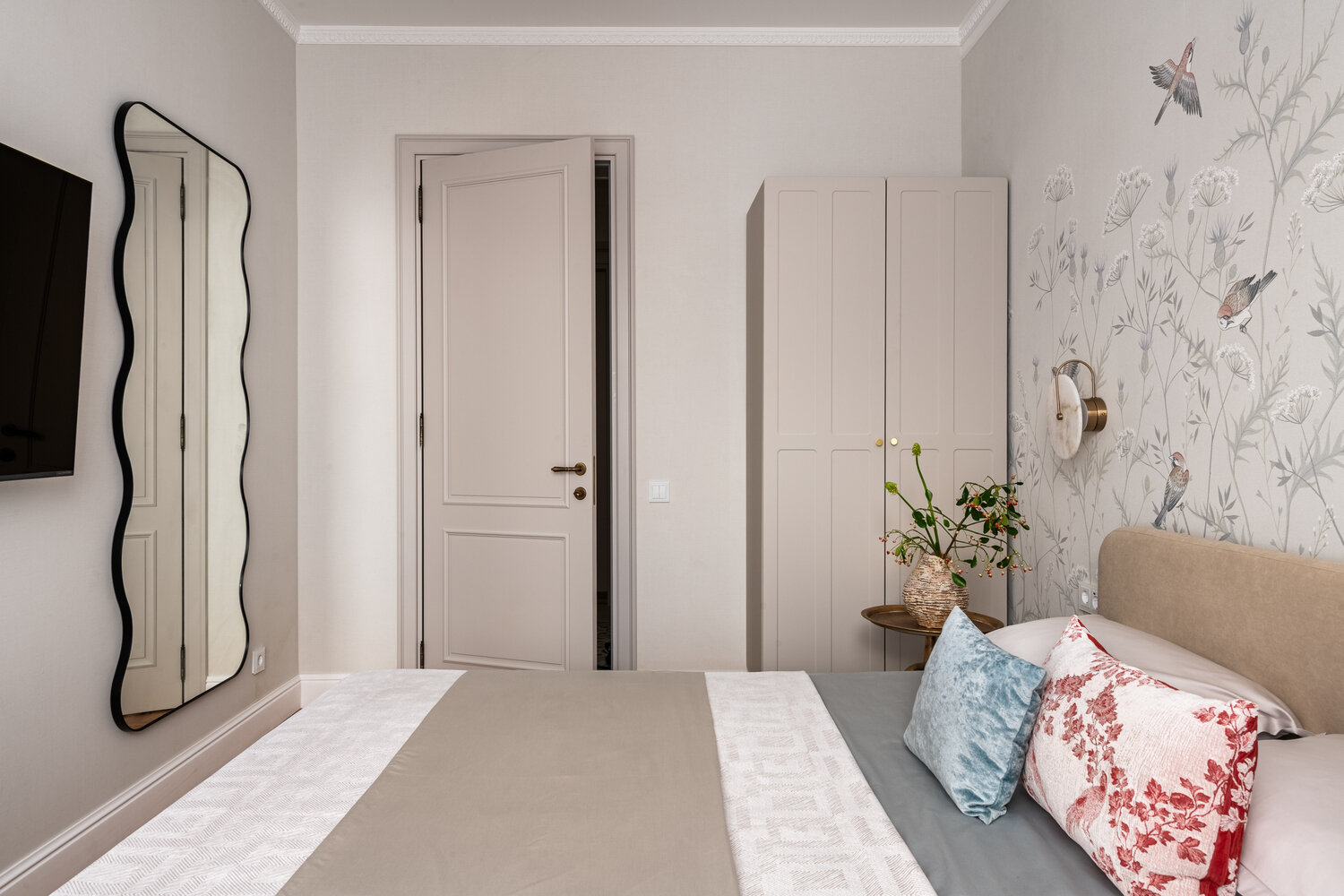 Фотография: Спальня в стиле Современный, Квартира, Проект дня, Москва, Сталинка, 2 комнаты, 40-60 метров, Патриаршие пруды, винтаж/ретро, Рамиля Шагиева, Эмиль Шагиев – фото на INMYROOM