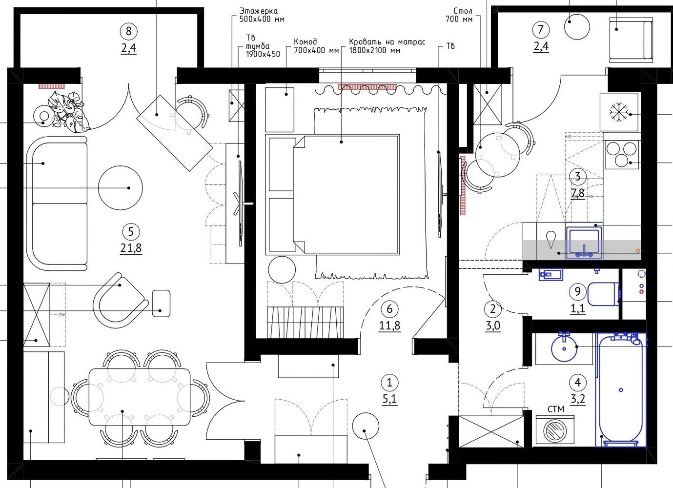Фотография: Планировки в стиле , Современный, Квартира, Проект дня, Москва, Сталинка, 2 комнаты, 40-60 метров, Патриаршие пруды, винтаж/ретро, Рамиля Шагиева, Эмиль Шагиев – фото на INMYROOM