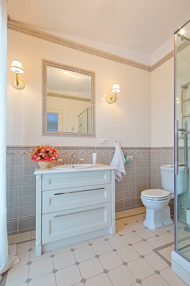 Фотография:  в стиле , Дом, Globo, Белый, Проект недели, Бежевый, Подмосковье, Дом и дача, Ralph Lauren, Sikkens, Руслан Телегин, Ольга Деревлева, ODEL, интерьер загородного дома, Ceramiche Grazia, имитация бруса в интерьере, лестница в загородном доме, двухэтажный загородный дом – фото на INMYROOM