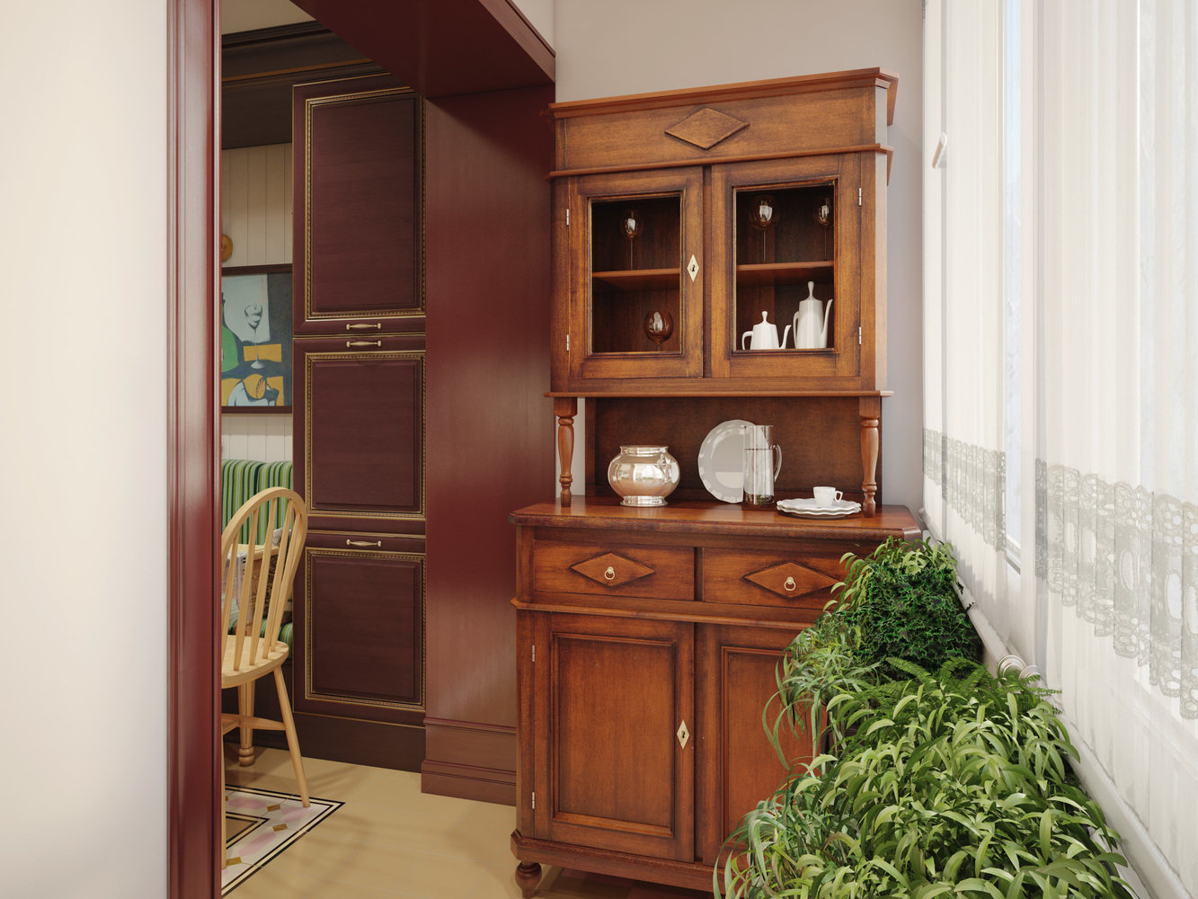 Фотография:  в стиле , Кухня и столовая, Классический, Белый, Проект недели, Красный, Little Greene, как оформить балкон, Smeg, как оформить интерьер в классическом стиле, как оформить интерьер кухни, Vives ceramica, Самара, Nika d'Oro, Маша Яшина, DifferentRooms, дизайн кухни, цвет марсала, как присоединить балкон к кухне, кухня в русском стиле – фото на INMYROOM
