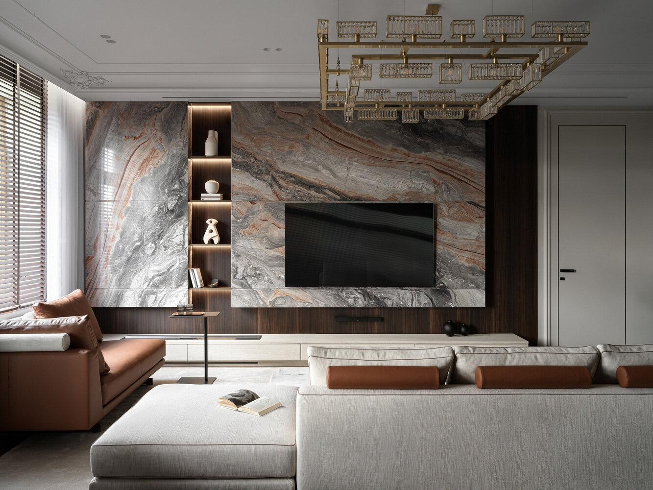 Стена-скала, стеклянная гардеробная и мраморный остров: квартира 169 м² с элементами классики4,6