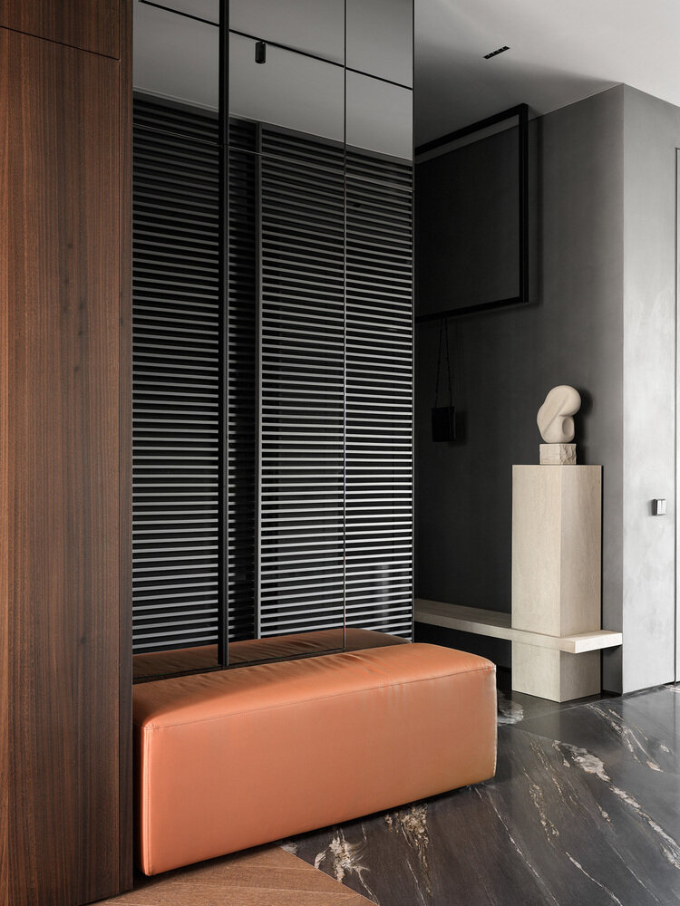 Стена-скала, стеклянная гардеробная и мраморный остров: квартира 169 м² с элементами классики4,0