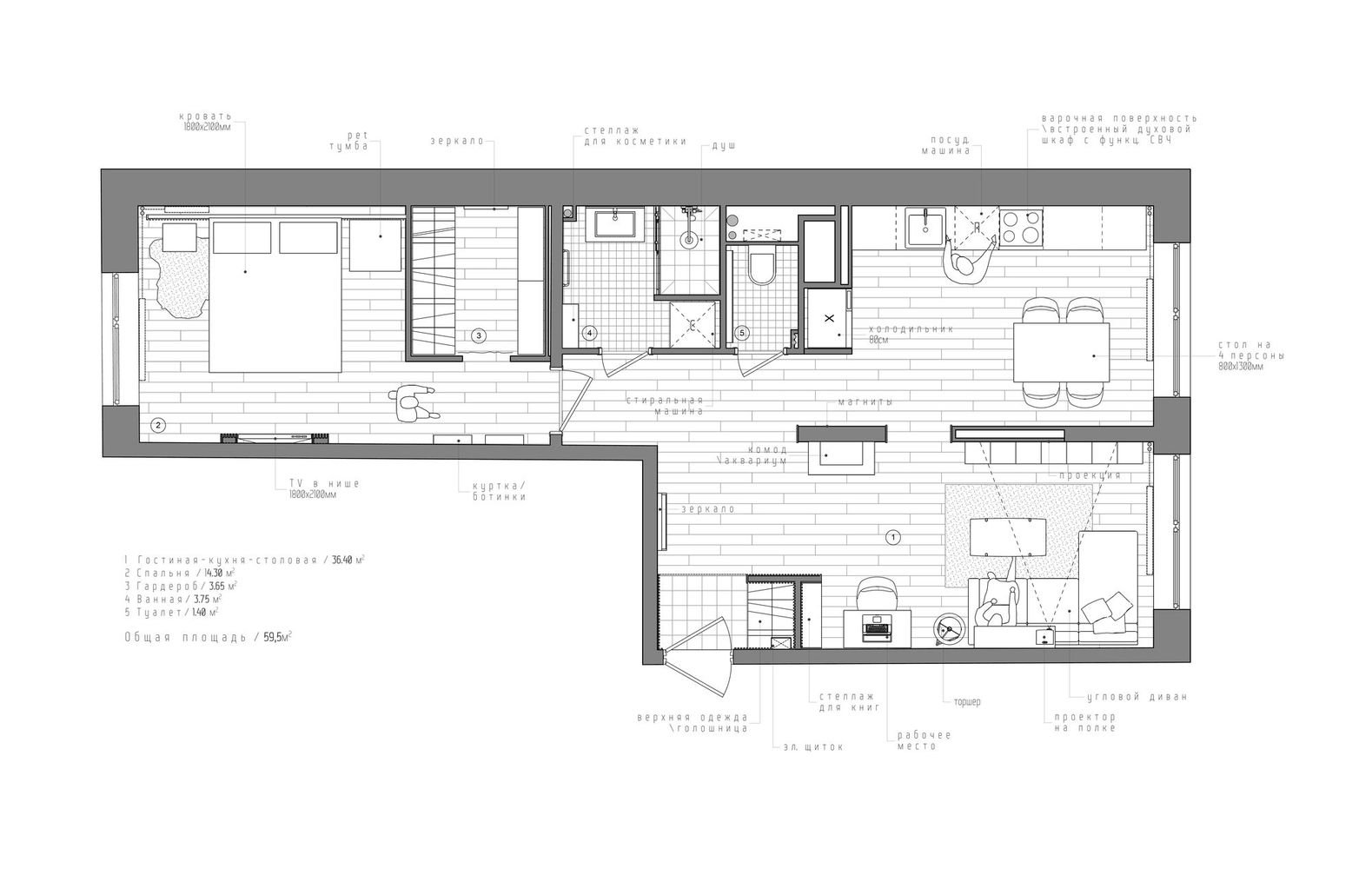 Фотография: Планировки в стиле , Скандинавский, Современный, Квартира, Белый, Проект недели, Санкт-Петербург, Int2 architecture, новостройка, Монолитный дом, 2 комнаты, 40-60 метров, 60-90 метров – фото на INMYROOM