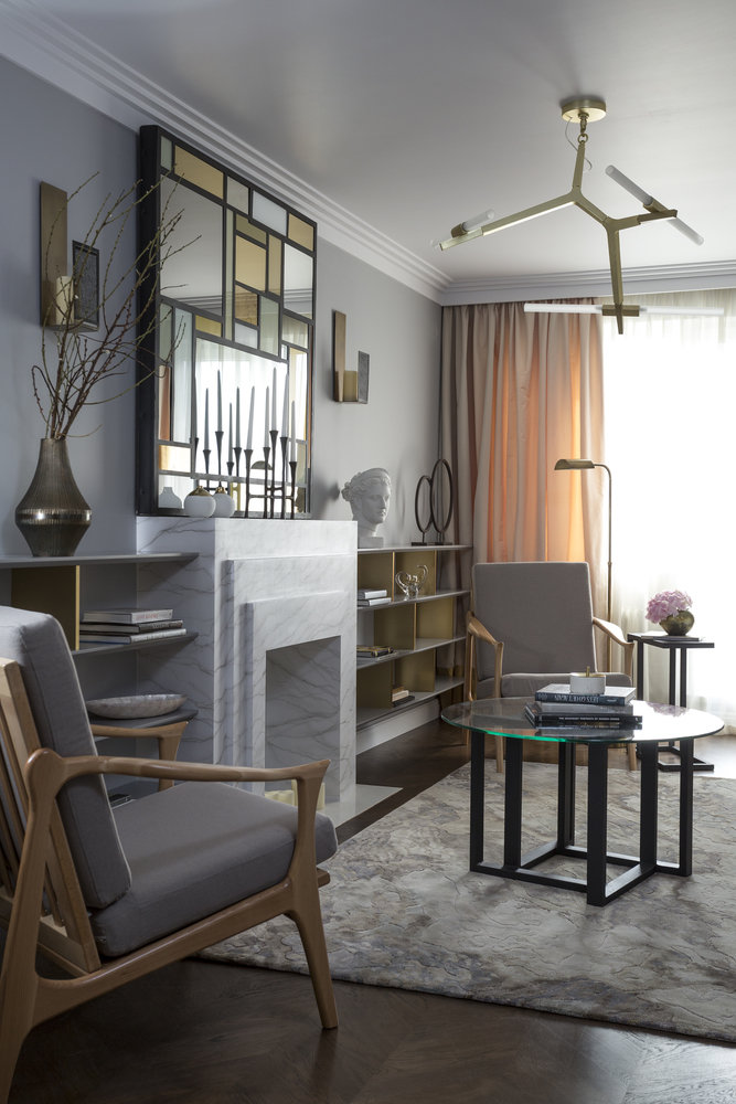 Фотография:  в стиле , Гостиная, Классический, Современный, Декор интерьера, Россия, Планировки, Екатерина Козлова, Новая Москва, Ясенево, дизайн гостиной-библиотеки, дизайн гостиной с камином, дизайн гостиной в городской квартире, система хранения в гостиной, как спрятать телевизор в гостиной, телевизор в гостиной, как разместить телевизор в комнате – фото на INMYROOM