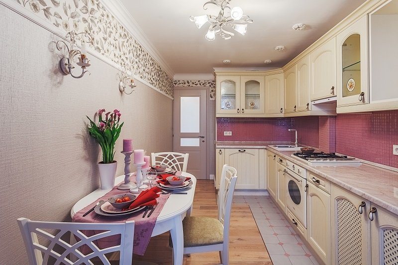 Фотография:  в стиле , Кухня и столовая, Прованс и Кантри, Эклектика, Белый, Прованс, Проект недели, Москва, Бежевый, Розовый, Кухонный фартук, Марина Саркисян, Eijffinger, интерьерный стиль прованс, прованс в интерьере, Donolux, мозаика на кухне, стиль прованс, кухня в стиле прованс, ARTE LAMP, как оформить интерьер кухни, Orac decor, интерьер кухни, кухня, керамическая плитка на кухне, Verona Mobili, Vives ceramica, мозаика на кухонном фартуке, дизайн кухни, дом серии II-67, кухня в доме серии II-67, брежневка, интерьер брежневки, кухня в брежневке – фото на INMYROOM