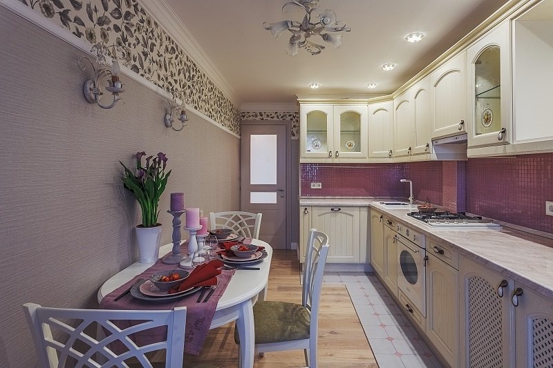 Фотография:  в стиле , Кухня и столовая, Прованс и Кантри, Эклектика, Белый, Прованс, Проект недели, Москва, Бежевый, Розовый, Кухонный фартук, Марина Саркисян, Eijffinger, интерьерный стиль прованс, прованс в интерьере, Donolux, мозаика на кухне, стиль прованс, кухня в стиле прованс, ARTE LAMP, как оформить интерьер кухни, Orac decor, интерьер кухни, кухня, керамическая плитка на кухне, Verona Mobili, Vives ceramica, мозаика на кухонном фартуке, дизайн кухни, дом серии II-67, кухня в доме серии II-67, брежневка, интерьер брежневки, кухня в брежневке – фото на INMYROOM