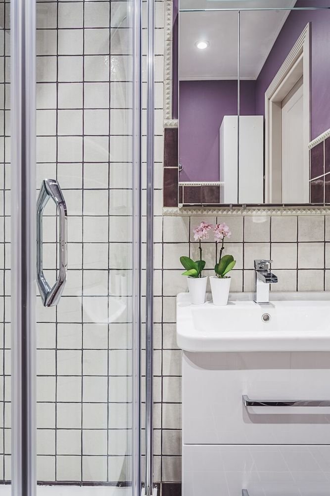 Фотография:  в стиле , Ванная, Современный, Белый, Проект недели, Москва, Серый, Фуксия, Марина Саркисян, Сергей Красюк, ванная в современном стиле, как оформить маленький санузел, дом серии II-67, Кирпичный дом – фото на INMYROOM