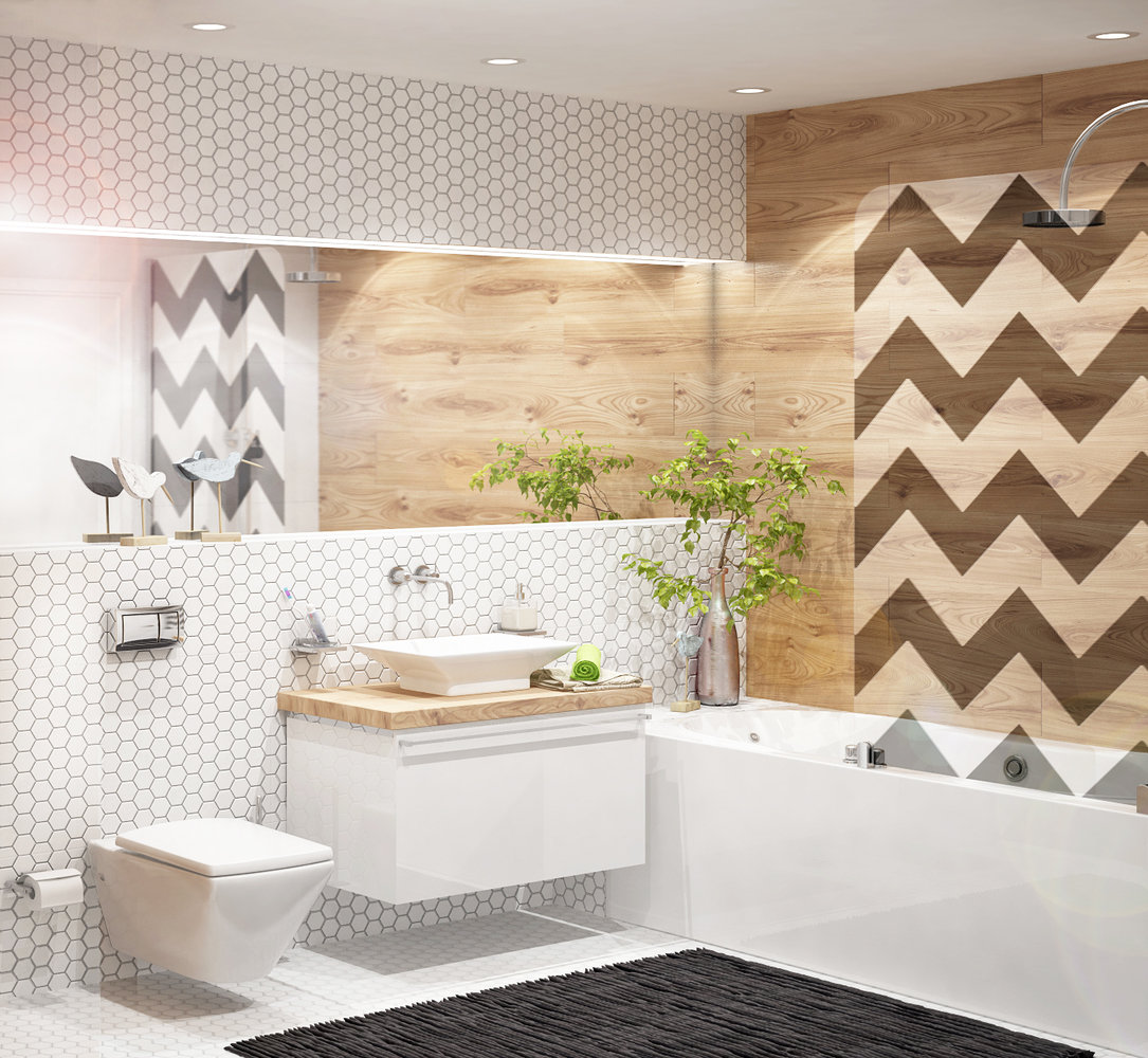Фотография:  в стиле , Ванная, Современный, Белый, Проект недели, Бежевый, Jacob Delafon, ARTE LAMP, ванная в современном стиле, Inmosaic, Escale, Ольга Тишкаева, RUBIK, как оформить совместный санузел, дизайн совместного санузла, ванная с подвесным унитазом, новостройка – фото на INMYROOM