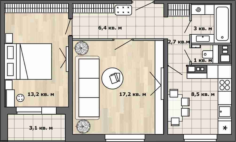 Фотография: Планировки в стиле , Перепланировка, П-30, Анастасия Киселева, Максим Джураев, дом серии П-30, планировка двухкомнатной квартиры в панельном доме, как обустроить двухкомнатную квартиру в панельном доме, перепланировка двухкомнатной квартиры в доме серии П-30 – фото на INMYROOM