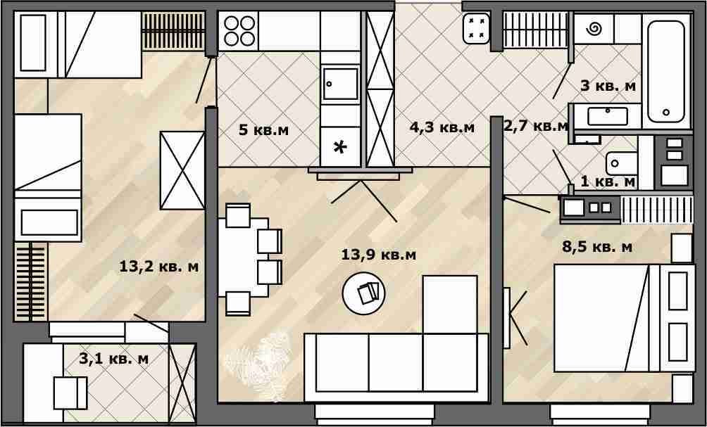 Фотография: Планировки в стиле , Перепланировка, П-30, Анастасия Киселева, Максим Джураев, дом серии П-30, планировка двухкомнатной квартиры в панельном доме, как обустроить двухкомнатную квартиру в панельном доме, перепланировка двухкомнатной квартиры в доме серии П-30 – фото на INMYROOM