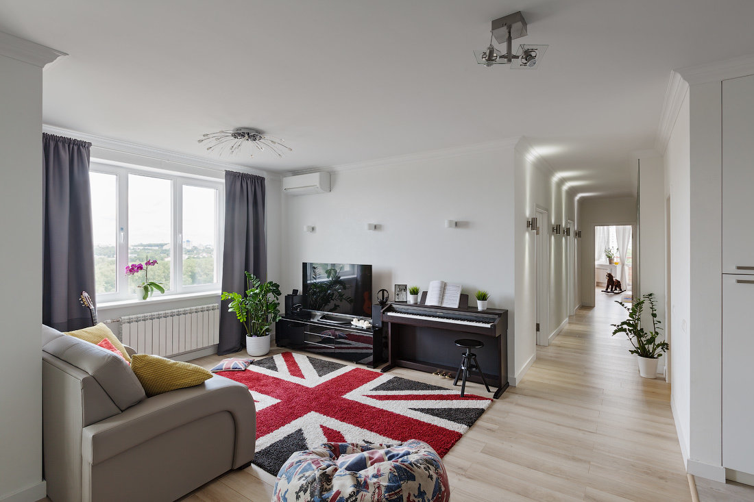 Фотография: Гостиная в стиле Скандинавский, Квартира, Проект недели, Минск, Татьяна Корзун, Яна Сенькевич, Синий кот, новостройка, Монолитный дом, 4 и больше, Более 90 метров – фото на INMYROOM