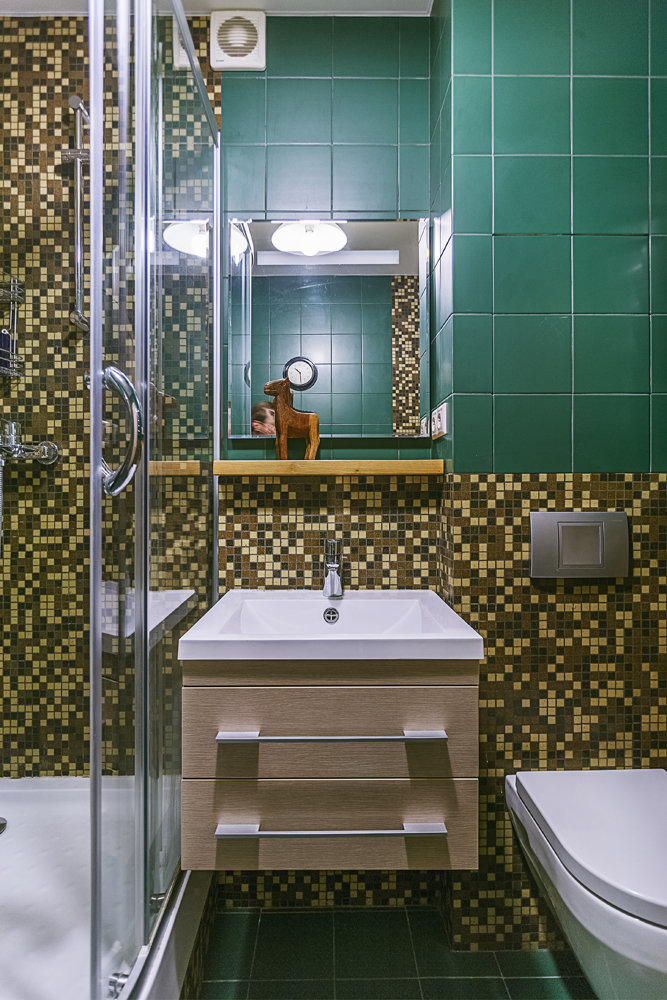 Фотография: Ванная в стиле Современный, Квартира, Россия, Проект недели, Новая Москва, Максим Ковалевский, переделка хрущевки, как обустроить двухкомнатную квартиру в хрущевки, как из типовой квартиры сделать студию, ремонт хрущевки, видео, Хрущевка – фото на INMYROOM