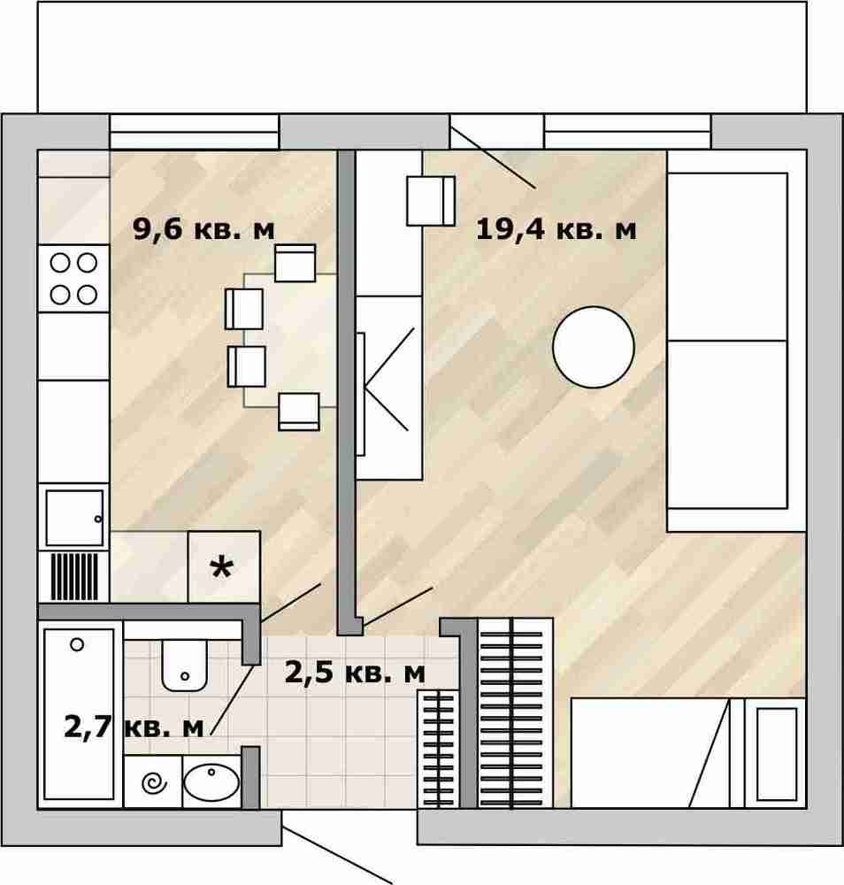 Фотография: Планировки в стиле , Перепланировка, Анастасия Киселева, Максим Джураев, дом серии И209-А, как обустроить однокомнатную квартиру в блочном доме, перепланировка однушки в блочном доме, Блочный дом – фото на INMYROOM
