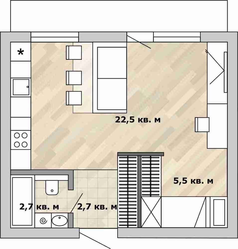 Фотография: Планировки в стиле , Перепланировка, Анастасия Киселева, Максим Джураев, дом серии И209-А, как обустроить однокомнатную квартиру в блочном доме, перепланировка однушки в блочном доме, Блочный дом – фото на INMYROOM