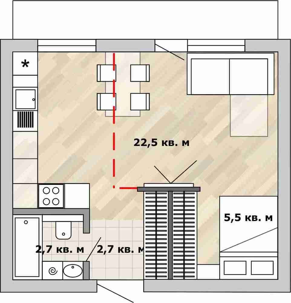 Фотография: Планировки в стиле , Перепланировка, Анастасия Киселева, Максим Джураев, дом серии И209-А, как обустроить однокомнатную квартиру в блочном доме, перепланировка однушки в блочном доме, Блочный дом – фото на INMYROOM