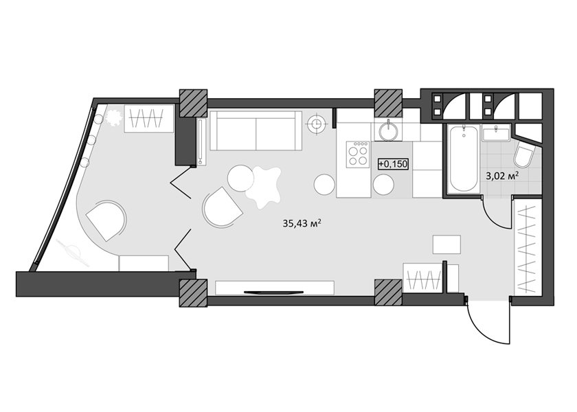Фотография: Планировки в стиле , Современный, Квартира, Студия, Проект недели, Красногорск, Московская область, Юлия Пискарева, Yolo, новостройка, Монолитный дом, до 40 метров – фото на INMYROOM
