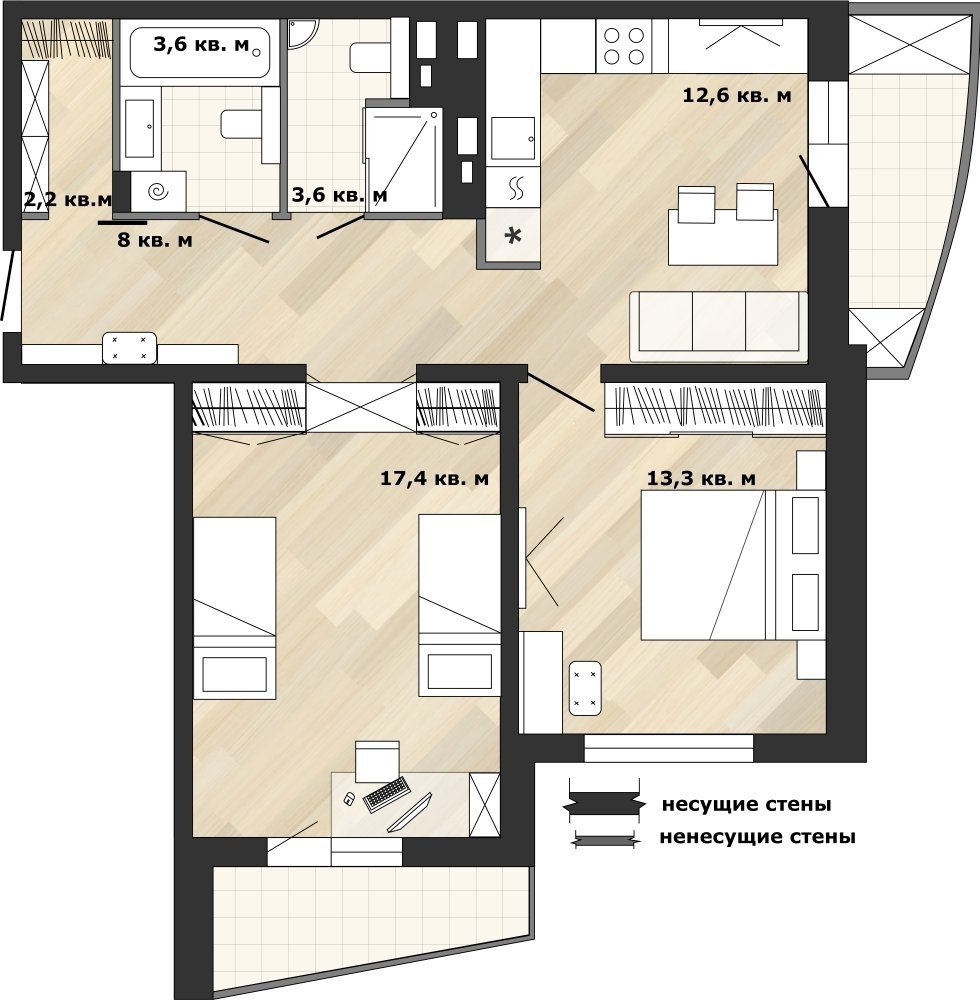 Фотография: Планировки в стиле , Перепланировка, Анастасия Киселева, Максим Джураев, И-155Б – фото на INMYROOM